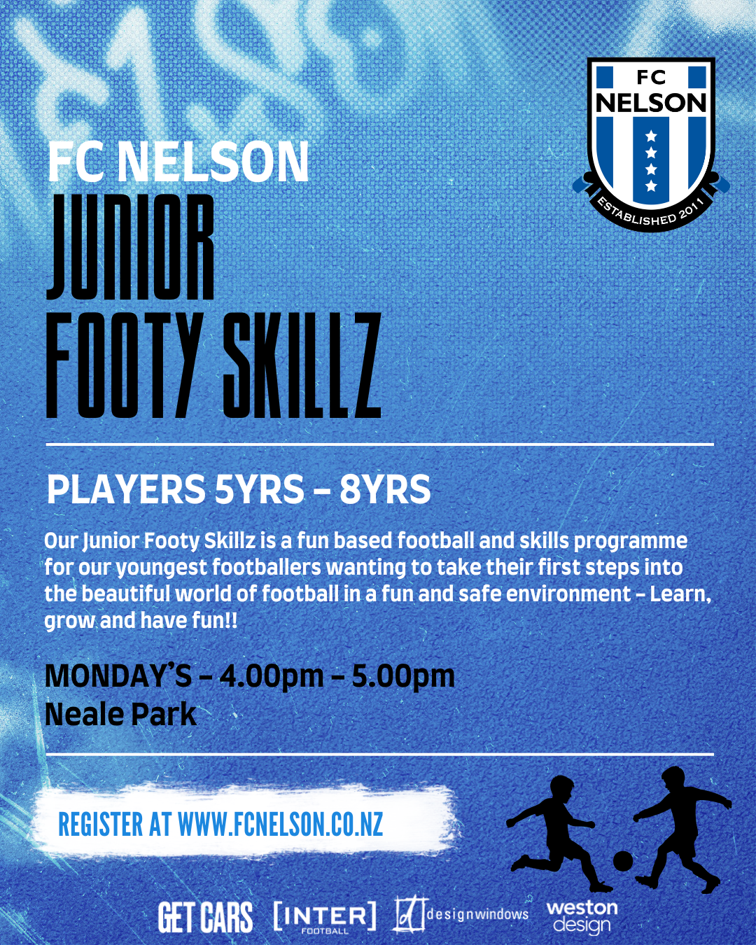 The FC Nelson Junior Footy Skillz runs on Monday's 4.00-5.00pm at Neale Park